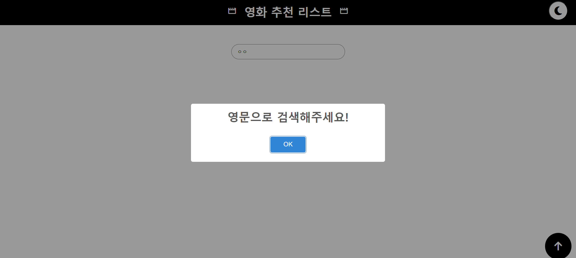 마인드부터 잘못됬다 난. 그래서 생각해낸게, 읽어온 데이터들이 영문으로 표기되니 한글을 입력했을 때 영문으로 검색하라는 경고창이 뜬다면?