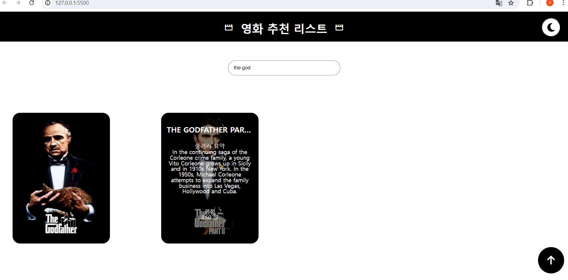 팀원분들이 한 개인 프로젝트들 중 조장이신 선민님의 프로젝트에 현경님의 다크/라이트 모드 기능이 추가된 것이