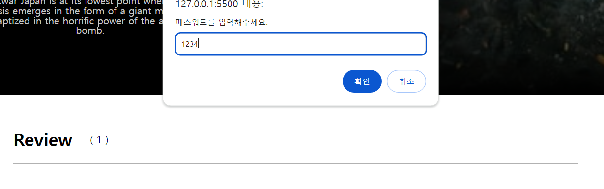 그리고 또 하나의 문제는 alert 은 비밀번호를 **** 표시 할 수 없다는 점.