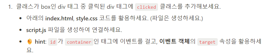 //논리연산자 -> div 와 클래스명이 box 라면 -> clicked 클래스를 추가한다