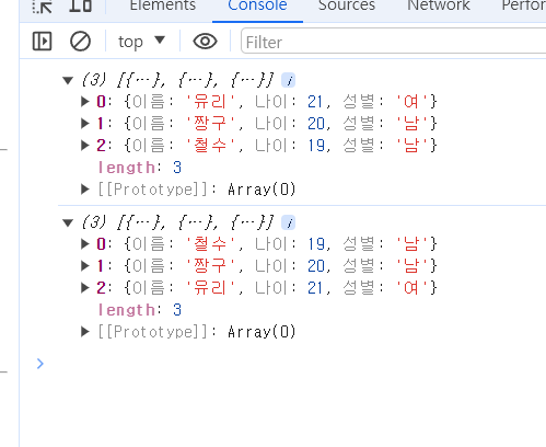 const 나이정렬 = [...users].sort((a, b) => {
