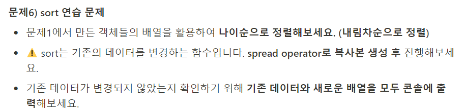 sort 는 기존 데이터를 변경하는 함수이기에 스프레드 오퍼레이터 (...) 로 복사본 생성 후 함수를 실행해야 기존 데이터가 바뀌지 않음.