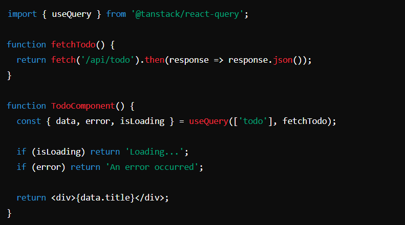 - 캐싱: 서버에서 가져온 데이터를 자동으로 캐시하여 성능을 향상시키고 불필요한 요청을 줄입니다.
